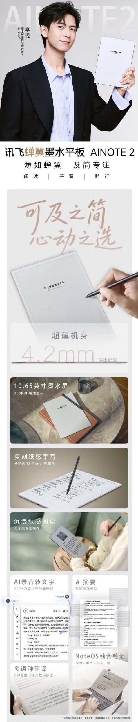 IT之家 4 月 23 日消息,科大讯飞现已推出号称是“世界最薄墨水屏平板”的 AINOTE2 电纸书,定价为 3999 元,将于 19:30 发售。