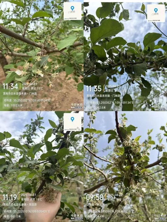 目前均处于落花期,坐果情况尚不明晰。大概 2 - 3 天后可判断坐果情况,若后续天气良好,预计坐果顺利,今年有望迎来苹果大年。